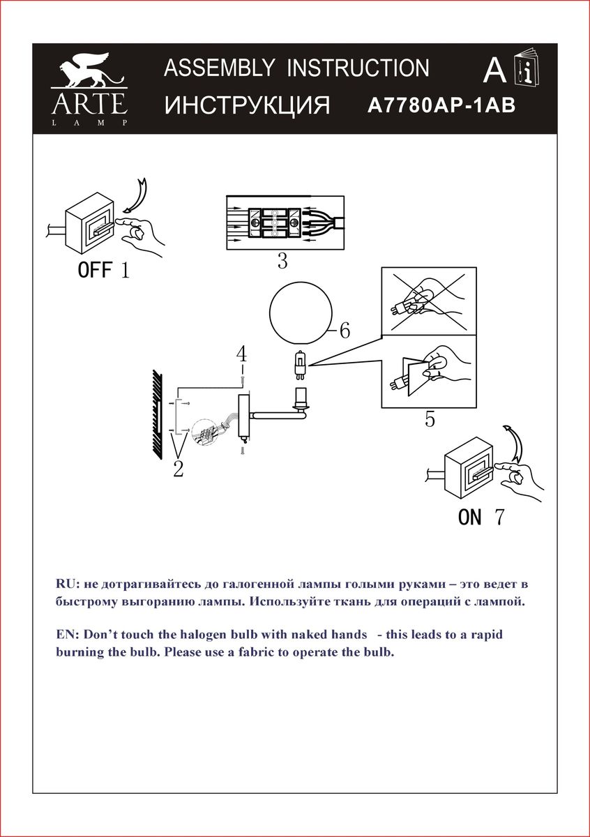 Бра Arte Lamp Albus A7780AP-1AB