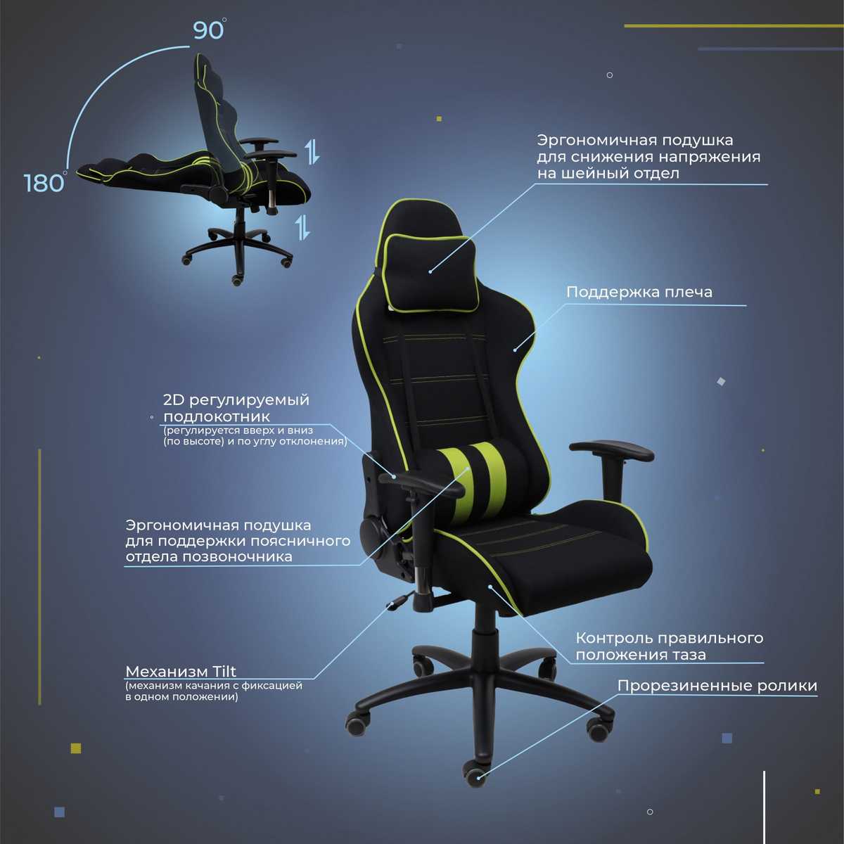 Игровое кресло AksHome Infiniti зеленый + черный, ткань 83804
