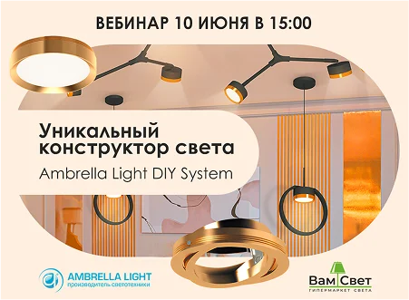 Вебинар-знакомство с инновационной системой по созданию светильников – конструктором DIY System от бренда Ambrella Light.